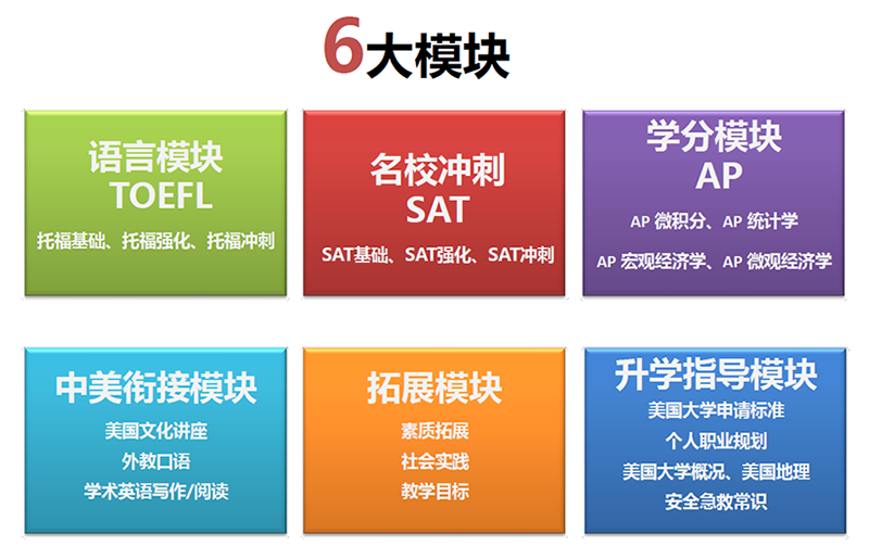 人民大学师资,以及国内TOEFL、SAT一线名师,资深外教联合组成,并拥有自编内部教材,应对语言标准化考试,独有的教学经验和模式,使学生正确掌握英语学习方法,快速提升英语考试能力。“腾飞桥”课程于2010年引入美国大学理事会组织和指导的AP课程,即美国大学先修课程,学分被全美大学认可,课程体系中的美国地理、演讲技巧、全英文讨论、风俗文化、法律、美国大学录取标准等各个方面的知识,让学生提前感受国外的学习氛围,在了解适应美式教育、生活习俗之余全面提升其听力、口语水平,快速建立英语逻辑思维,让学生提前了解和适应美国学习和生活。